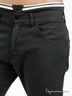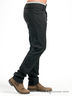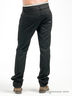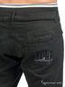 Джинсы мужские черного цвета. Прямой крой. Два кармана спереди. Три кармана сзади. На заднем кармане декоративная вышивка с логотипом бренда. По верхнему краю пояса пришита декоративная манжета белого цвета с прострочкой.