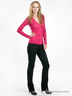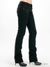 Модель прямого кроя застегивается на пуговицу и молнию. К поясу пришиты петли для ремня. Три передних кармана, два задних кармана. Декоративная вышивка на задних карманах, металлический логотип на правом заднем кармане. Декоративный металлический логотип на правом заднем кармане.