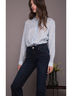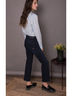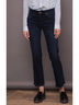 Джинсы прямые с высокой посадкой. Выполнены в классическом пятикарманном крое. Застегиваются на молнию и пуговицу. Дополнены декоративной вышивкой на правой штанине.