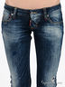 Детали: отрезной пояс со шлевками, треугольная кокетка, застегиваются на пуговицы, 5 карманов