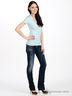 Детали: отрезной пояс со шлевками, треугольная кокетка, застегиваются на пуговицы, 5 карманов