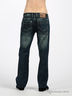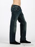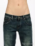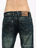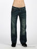 Классические пятикарманные джинсы с потертостями и эффектом варенки. Застегиваются на молнию и пуговицу.