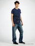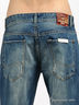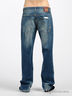 Классические мужские джинсы. Отрезной пояс, есть шлевки для ремня. Пять карманов. Застегиваются на молнию и пуговицу. Декорированы цветной прострочкой и потертостями.