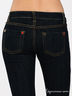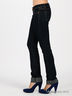 Плотные джинсы прямого покроя цвета темно-синий меланж. Отрезной пояс. Есть шлевки для ремня. Пять карманов. Застегиваются на молнию и пуговицу. Декорированы контрастной прострочкой.