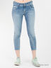 Стильные джинсы зауженного кроя длиной 7/8 с застежкой на молнию и пуговицу спереди. Модель дополнена втачными карманами по бокам, на поясе - шлевки для ремня. Отличный вариант на каждый день.