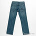 Детали: в пояс вставлена регулирующаяся резинка, застежка на пуговицу и молнию, к поясу пришиты шлевки, три передних кармана, два задних кармана, эффект потертости