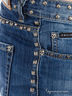 Стильные мужские джинсы из плотного, неэластичного хлопкового денима. Отрезной пояс со шлевками для ремня. Застежка на пуговицу и молнию. Спереди два прорезных кармана и один накладной, сзади два накладных кармана. Длинные слегка зауженные брючины. Модель декорирована металлическими клепками и черепами. Прекрасно сочетаться с разными по фасону и фактуре вещами.