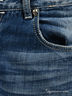 Оригинальные джинсы из плотного, неэластичного денима. Отрезной пояс со шлевками для ремня. Застежка на пуговицу и металлическую молнию. Спереди два прорезных кармана и один накладной, сзади два накладных кармана. Длинные зауженные брючины. Карманы, гульфик декорированы потрясающими металлическими заклепками-черепами. На брючинах декоративные потертости. Будьте всегда в центре внимания!