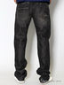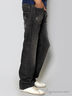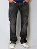 Детали: широкий втачной пояс и шлевки для ремня, пять карманов, застежка на молнии и на пуговице, джинсы вытертые, брючины прямые по всей длине, стандартный крой.