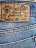 Детали: Втачной пояс с шлевками под ремень, пять карманов, застежка на молнии и на пуговице, джинсы вытерты, штанина прямая до щиколотки.