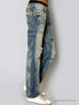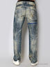 Детали: широкий втачной пояс и шлевки для ремня, застежка на молнии и на пуговице, пять карманов, джинсы вытерты, декорированы с эффектом запачканости и протертости, брючины прямые до щиколотки, стандартный крой.