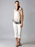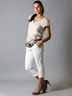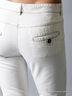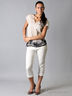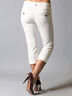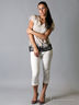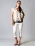 Детали: втачной пояс и шлевки для ремня, застежка на молнии и на пуговице, четыре врезных кармана брючного кроя, длина чуть ниже колена, брючины заужены к низу, подчеркивают фигуру, узкие по бедрам.
