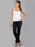 Детали: широкий втачной пояс и шлевки для ремня, застежка на молнии и на пуговице, талия занижена, пять карманов, подчёркивающие фигуру, джинсы узкие по бёдрам и зауженные книзу, декорированы оригинальными принтом.