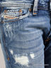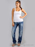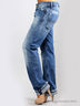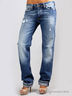 Детали: Втачной пояс с шлевками под ремень, пять карманов, застежка на молнии и на пуговице, джинсы вытерты, штанина прямая до щиколотки.