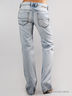 Детали: широкий втачной пояс и шлевки для ремня, застежка на молнии и на пуговице, пять карманов, брючины прямые по всей длине, стандартный крой.