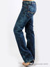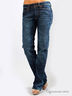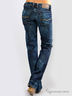 Детали: втачной пояс и шлевки для ремня, пять карманов, застежка на молнии и на пуговице, штанины прямые до щиколотки, джинсы вытерты, широкий пояс.