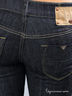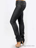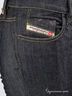 Детали: широкий втачной пояс и шлевки для ремня, талия занижена, пять карманов, застежка на молнии и на пуговице, джинсы подчёркивающие фигуру, узкие по бёдрам и зауженные книзу.