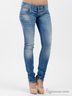 Модные джинсы классического пятикарманного кроя с застежкой на пуговицу и молнию. Для удобства на поясе расположены шлевки для ремня. Модель оформлена легким "выбеленным" эффектом.