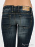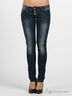 Классические джинсы прямого покроя темно-синего цвета. Отрезной пояс. Есть шлевки для ремня. Застегиваются на болты. Пять карманов. Сзади прямоугольная кокетка. Декорированы контрастной прострочкой.