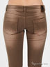 Стильные брюки слегка зауженного кроя из плотного потертого денима. Застежка на молнию и пуговицу. Отрезной пояс со шлевками для ремня, треугольная кокетка. Имеется 5 карманов. Будут отлично сочетаться с разными по стилю и фасону вещами.