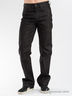 Мужские джинсы прямого кроя и средней посадки. Застегиваются на пуговицу в поясе и ширинку на застежке-молнии, имеются шлевки для ремня. Спереди модель оформлена двумя втачными карманами и одним небольшим "секретным" кармашком, а сзади - двумя накладными карманами.