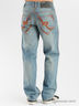 Модель прямого кроя и средней посадки станет отличным дополнением к вашему современному образу. Джинсы дополнены на задних карманах вышивкой красного цвета, а так же потертостями по всей длине и декоративными прорезями. Застегиваются джинсы на пуговицу в поясе и ширинку на застежке-молнии, имеются шлевки для ремня. Спереди модель оформлена двумя втачными карманами и одним небольшим "секретным" кармашком.