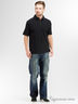 Стильные мужские джинсы подходят большинству мужчин. Модель прямого кроя и средней посадки . Джинсы дополнены швом на коленях. Застегиваются джинсы на пуговицу в поясе и ширинку на застежке-молнии, имеются шлевки для ремня. Спереди модель оформлена двумя втачными карманами и одним небольшим "секретным" кармашком, а сзади - двумя накладными карманами.