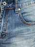 Повседневные джинсы из потертого денима прямого кроя. Отрезной пояс со шлевками для ремня. Треугольная кокетка. Застежка на молнию и пуговицу. 5 карманов.