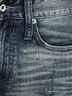 Стильные джинсы из потертого денима прямого кроя. Отрезной пояс со шлевками для ремня. Треугольная кокетка. Застежка на молнию и пуговицу. 5 карманов.