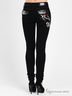 Повседневные джинсы из эластичного хб материала зауженного кроя. Отрезной пояс со шлевками для ремня. Застежка на пуговицу. Прямоугольная кокетка. Сзади 2 накладных кармана на клапане и кнопке. Модель украшена оригинальной вышивкой.