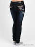 Повседневные джинсы из эластичного хб материала зауженного кроя. Отрезной пояс со шлевками для ремня. Застежка на пуговицу. Прямоугольная кокетка. Сзади 2 накладных кармана на клапане и кнопке. Модель украшена оригинальной вышивкой.