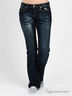 Классические джинсы из потертого денима расклешенного кроя. Отрезной пояс со шлевками для ремня. Застежка на молнию и пуговицу. Треугольная кокетка. 5 карманов.