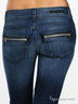 Прямые джинсы на низкой посадке. Перед украшен легкими потертостями и черными горизонтальными швами на коленках. Задние карманы на металлических молниях.
