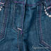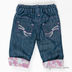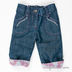 Утепленные джинсы с флисовой подкладкой. Отрезной пояс на резинке сзади, четыре кармана, застегиваются на пуговицу, низ изделия дополнен отворотами с принтом. Декорированы вышивкой.