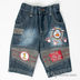 Джинсы для мальчика. Отрезной пояс со шлевками посажен на резинку сзади, застегиваются на пуговицу, четыре кармана. Декорированы оригинальной вышивкой и нашивками.