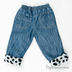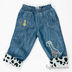 Утепленные джинсы с флисовой подкладкой. Пояс на резинке, четыре кармана, низ изделия дополнен отворотами с принтом. Декорированы вышивкой.