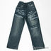Стильные джинсы для мальчика. Отрезной пояс со шлевками посажен сзади на резинку. Четыре кармана. Декорированы аппликациями.