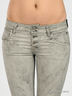 Зауженные джинсы классического покроя. Отрезной пояс. Есть шлевки для ремня. Застегиваются на болты. Пять карманов. Сзади треугольная кокетка.