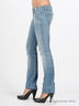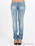 Джинсы классического прямого покроя. Отрезной пояс. Есть шлевки для ремня. Застегиваются на молнию и пуговицу. Шесть карманов. Сзади треугольная кокетка.