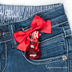 Детали: застежка на молнию и пуговицу, втачной пояс со шлевками для ремня, шесть карманов, декорированы отстегивающейся брошью с подвесками.