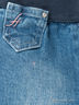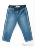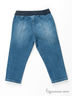 Удобные джинсы выполнены из денима средней плотности. Пояс на эластичной репсовой ленте, один декоративный кармашек с вышивкой и со стразом.