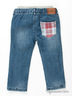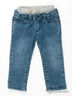 Классические джинсы выполнены из плотного неэластичного денима. Отрезной пояс на резинке со шлевками для ремня дополнен трикотажной манжетой, три кармана.