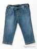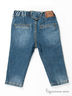 Классические джинсы выполнены из плотного неэластичного денима. Отрезной пояс на резинке со шлевками для ремня, четыре прорезных кармана.