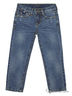 Детали: застежка на молнию и на пуговицу, отрезной пояс со шлевками для ремня, пять карманов