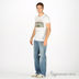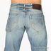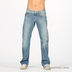 Прямые мужские джинсы. Отрезной пояс, есть шлевки для ремня. Пять карманов. Сзади посажены на кокетку. Застегиваются на молнию и пуговицу.