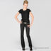 Классические джинсы, слегка расклешенного кроя. Отрезной пояс со шлевками, застегиваются на молнию и пуговицу, треугольная кокетка, 5 карманов.