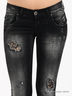 Детали: отрезной пояс со шлевками; пять карманов; застегиваются на молнию и пуговицу; декорированы прорезями со вставками блестящего ажурного материала
