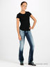 Джинсы из плотного денима слегка расклешенного силуэта являются классикой стиля. В них можно выйти и на прогулку с собачкой, и пойти на модную тусовку или в ресторан. Женские джинсы можно по праву считать краеугольным камнем любого модного гардероба.
