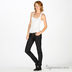 Прямые женские джинсы. Отрезной пояс, есть шлевки для ремня. Пять карманов. Сзади посажены на кокетку. Застегиваются на молнию и пуговицу. Декорированы контрастной прострочкой.