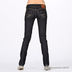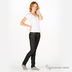 Зауженная модель застегивается на две пуговицы и молнию. К поясу пришиты петли для ремня. Три передних кармана, два задних кармана. Контрастная прострочка, декоративная вышивка на задних карманах.